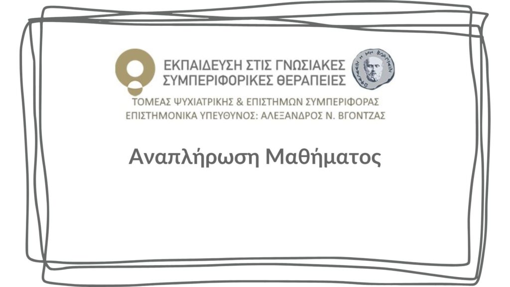 Αναπλήρωση μαθήματος Διαταραχές Προσωπικότητας – Συμπεριφορική Διαλεκτική Θεραπεία ΙΙ Posted on 17 Μαρτίου 2026 by george 17 Μαρ Σας ενημερώνουμε ότι η αναπλήρωση του μαθήματος «Διαταραχές Προσωπικότητας – Συμπεριφορική Διαλεκτική Θεραπεία ΙΙ» (Φ. Γονιδάκης) θα πραγματοποιηθεί το Σάββατο 21/03/2026, 09:00 – 12:00, στην αίθουσα 7Α1.1. Η ευεργετική δύναμη της Ενσυνειδητότητας – Εκπαιδευτικό Σεμινάριο στην Ενσυνειδητότητα (Mindfulness) για Επαγγελματίες & Φοιτητές Πεδίων Υγείας και Ψυχικής Υγείας Ανακοίνωση Συνεδρίου CBT 2026