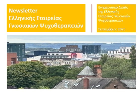Κυκλοφόρησε το νέο ενημερωτικό δελτίο της Ελληνικής Εταιρείας Γνωσιακών Ψυχοθεραπειών για τον μήνα Σεπτέμβριο 2025. Στο νέο Newsletter θα βρείτε: Τελετές Αποφοίτησης: Τον Ιούνιο ολοκληρώθηκαν με χαρά και συγκίνηση οι τελετές αποφοίτησης στα προγράμματα της Αθήνας και της Κρήτης, σηματοδοτώντας το κλείσιμο ενός κύκλου σπουδών και το άνοιγμα νέων διαδρομών για τους εκπαιδευόμενούς μας. Ευχόμαστε […]